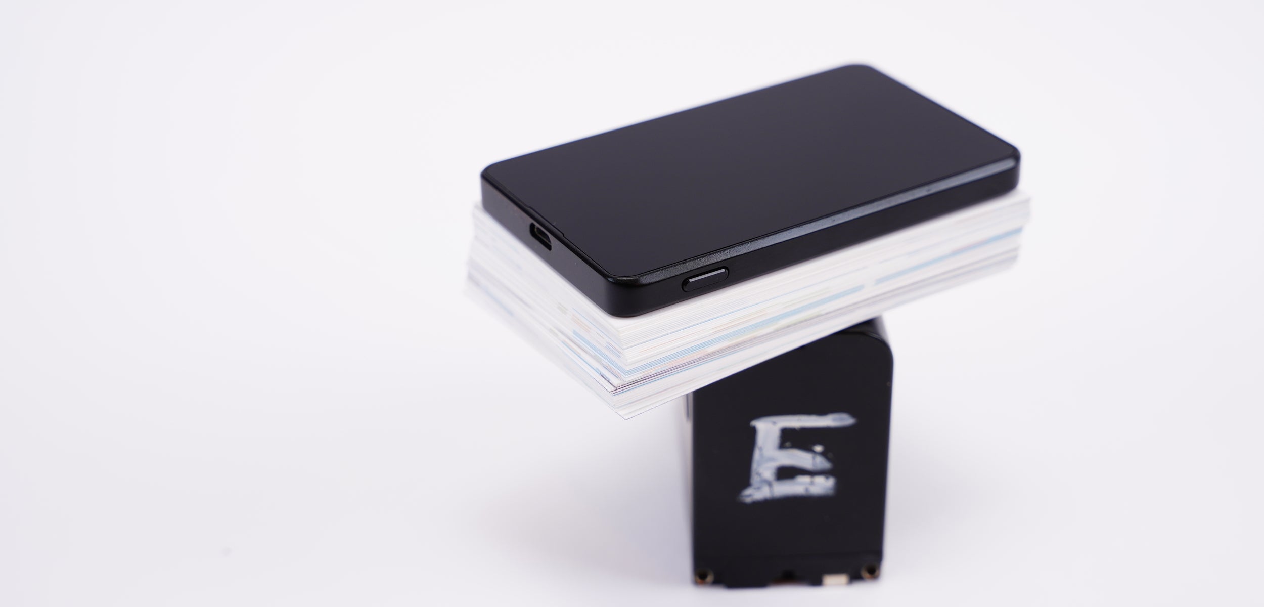 名刺サイズの外寸に対してできるだけ大きくディスプレイ幅を確保しました。