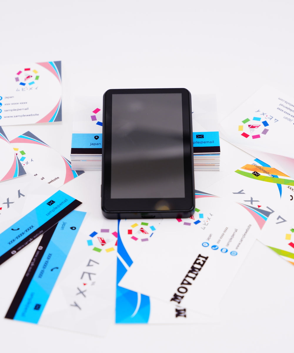 ムビメイは、高級ではなく、超高級名刺です。製品には、お好みの動画をアップロードすることで一般的な名刺にはない訴求力を持ったインパクト大な名刺になります。ここぞという場面で是非、ご活用ください。